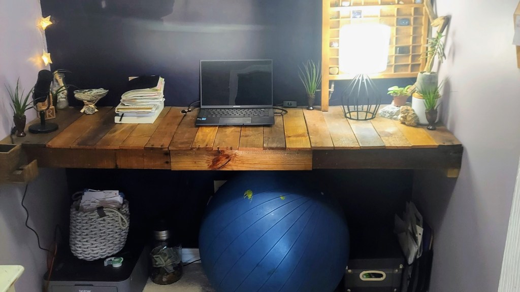 “I read about people who don’t have spare bedrooms turning their closets into mini offices, ‘nerd holes’ per the article. I’m a nerd, yes… but I don’t really need an office. I do fine on the couch or in my bed late at night. Mainly, I’m tired of being still and inactive, tired of not writing or moving any closer to my goals, and I’m tired of the mess. A nerd hole may be just the thing I need to break myself out of this funk.”