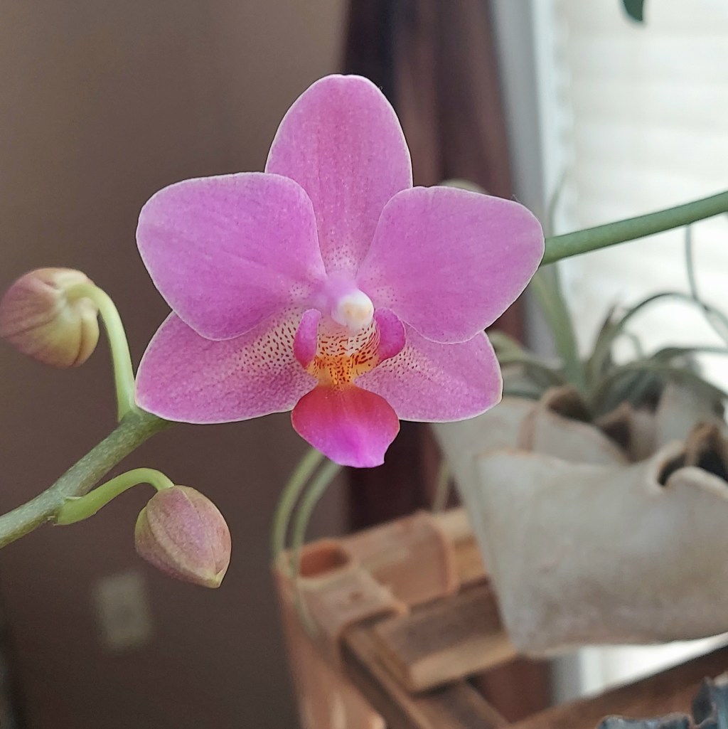 The problem with buying abused orchids is that they are a fussy plant and difficult to nurse back to health. The light, humidity, and watering has to be just right. Even then, they are slow growers so months can pass before I have any idea if what I’m doing is working. I’ve only managed to get two of my rescued orchids to bloom again, and only one so far this year.